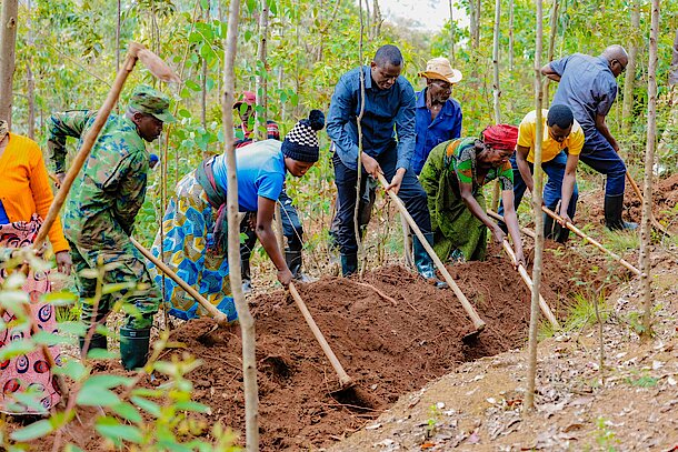 Minister of Local Government, Habimana Dominique, joined residents of Rulindo District, Buyoga Sector, in the end of March community work (Umuganda), where activities focused on clearing filtration trenches on hillsides to prevent disasters, particularly during the rainy season.